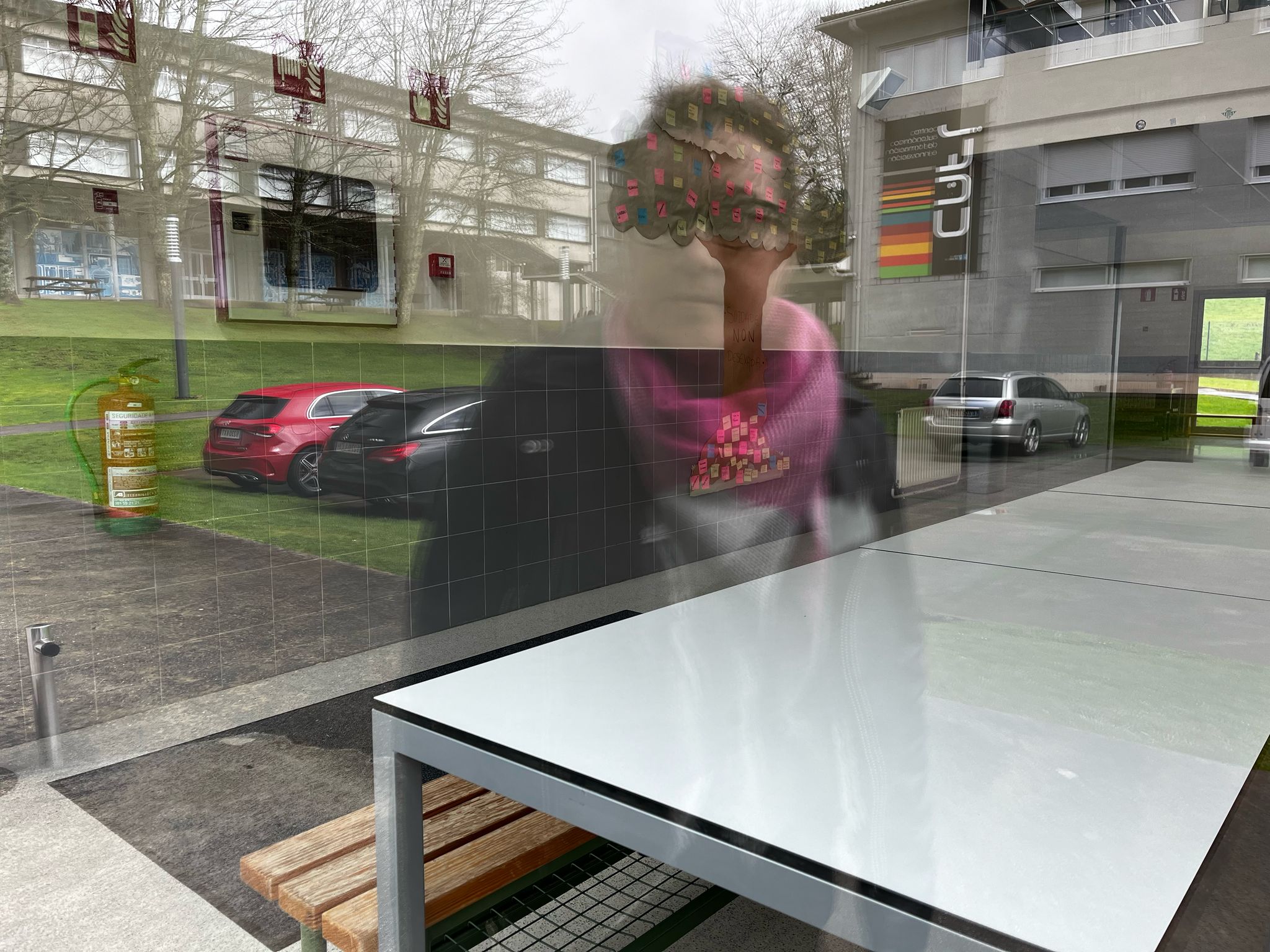 Buscar algo que reflicta e facer o retrato dunha persoa a través do reflexo.