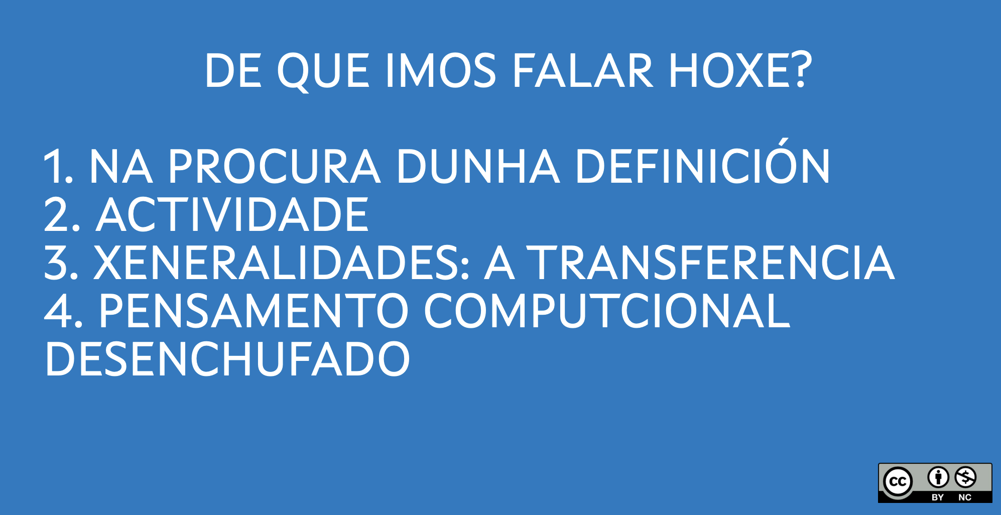 As imaxes das diapositivas son de Lara C.G. e teñen licencia CC BY-NC-SA 4.0 Creative Commons Attribution-NonCommercial-ShareAlike 4.0 International