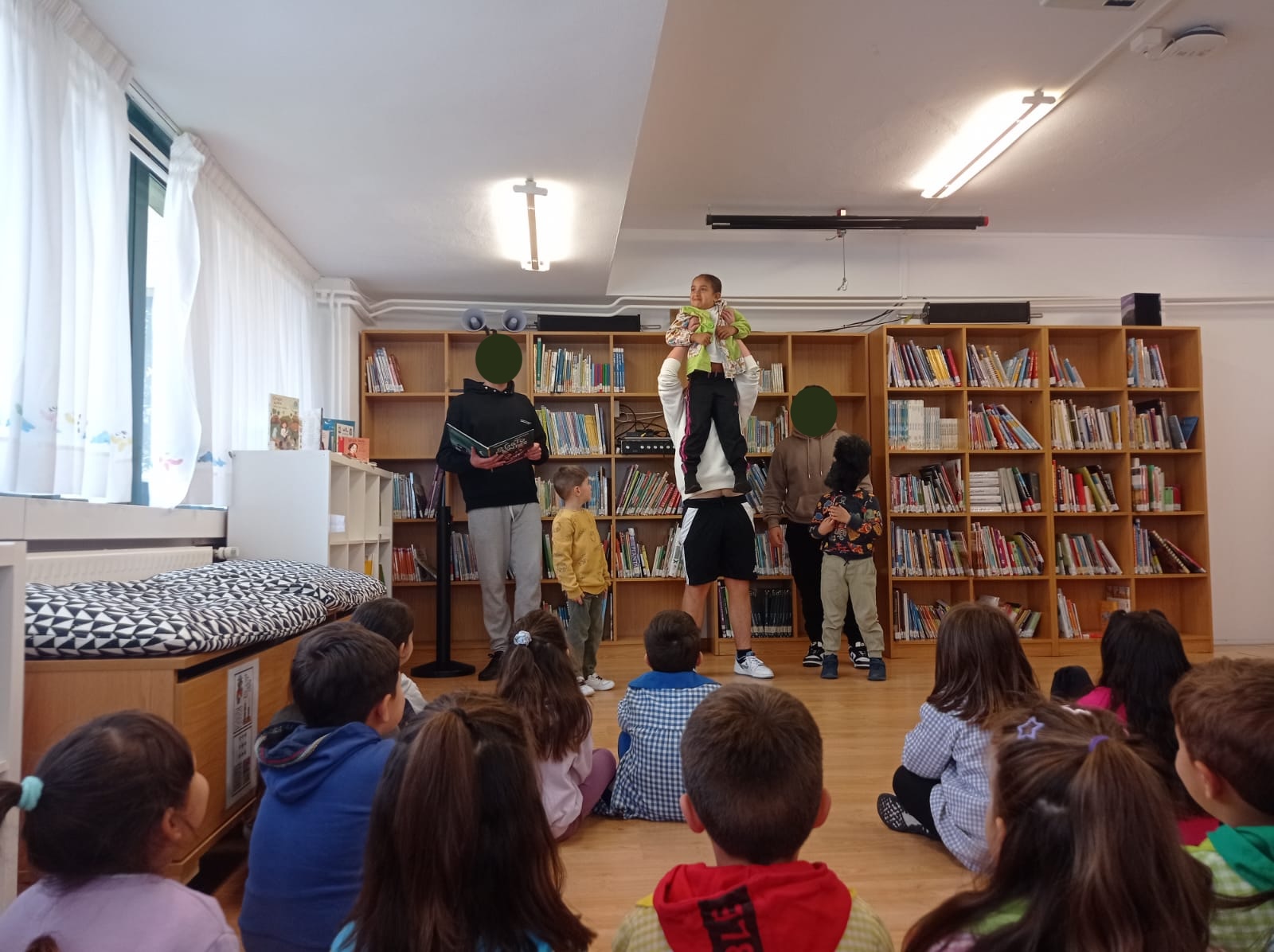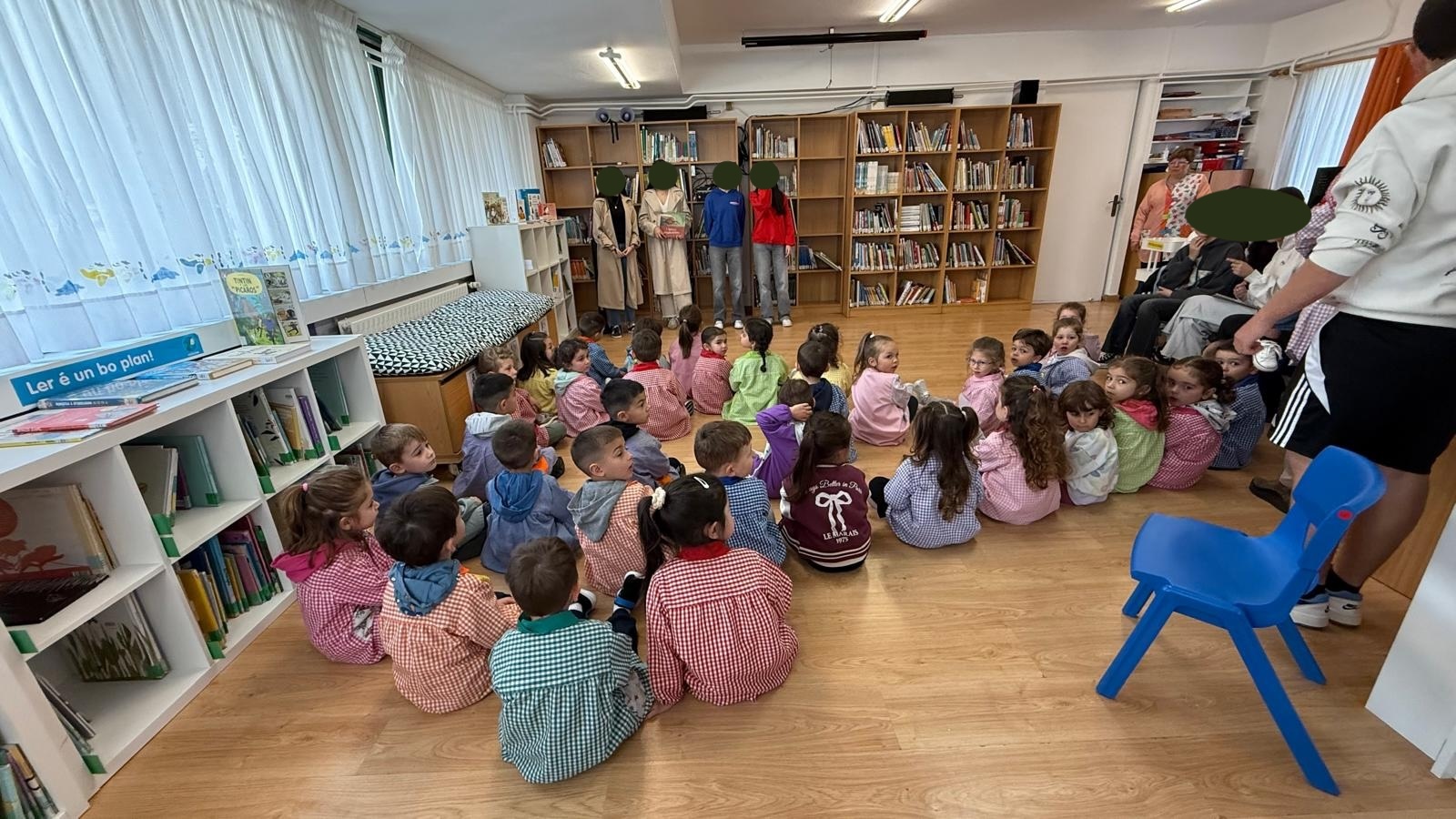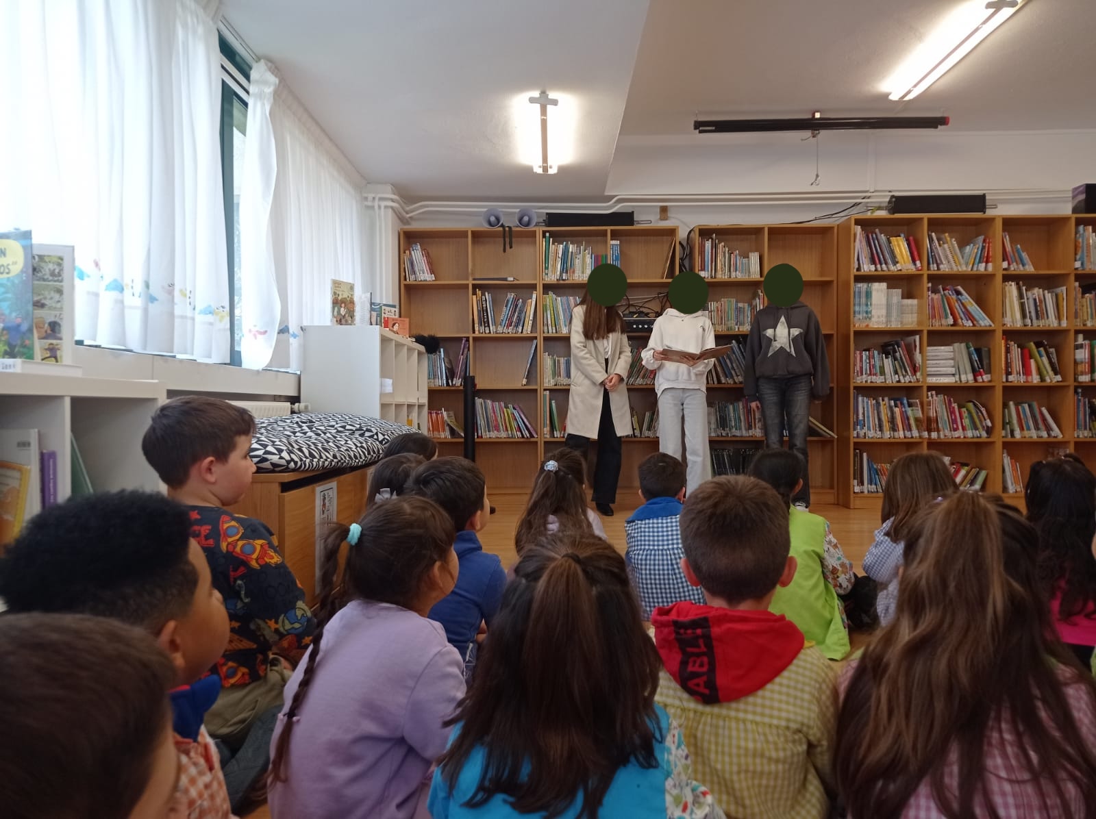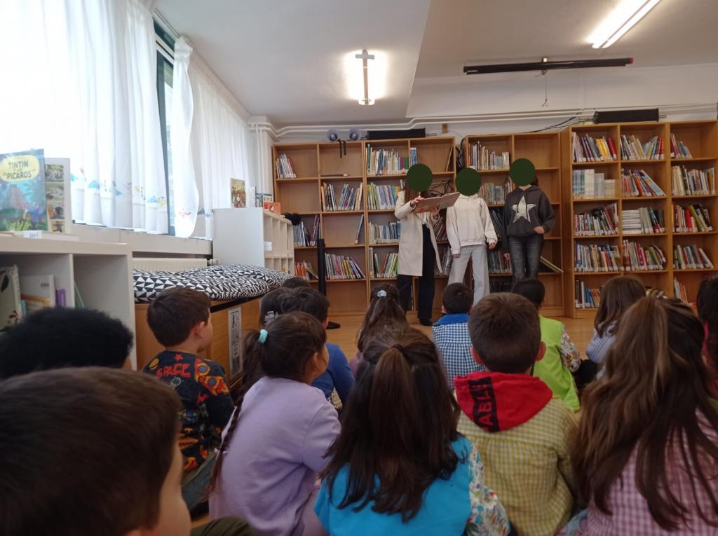 A actividade permitiu ao alumnado gozar dunha representación viva, creativa e divertida, na que o texto cobrou vida grazas á expresividade e ao entusiasmo das e dos participantes. A posta en escena tivo lugar entre libros, no espazo da nosa biblioteca, creando unha atmosfera inmersiva que fomentou o gusto pola lectura e pola expresión oral.