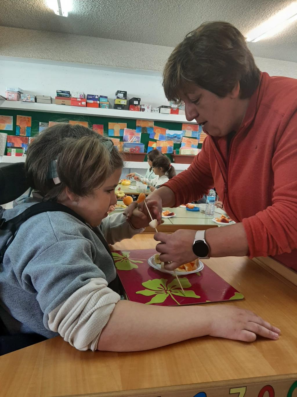 Hoxe, o alumnado de segunda ciclo elaborou unha merenda saudable, consistente na elaboración dunhas espetadas de froita fresca.
