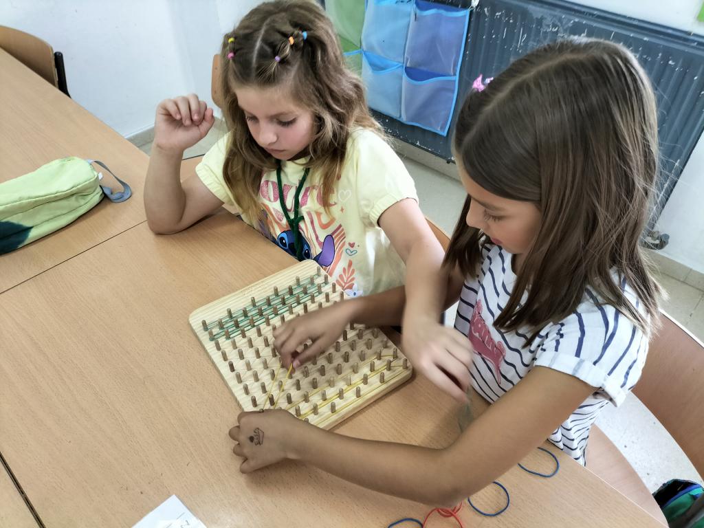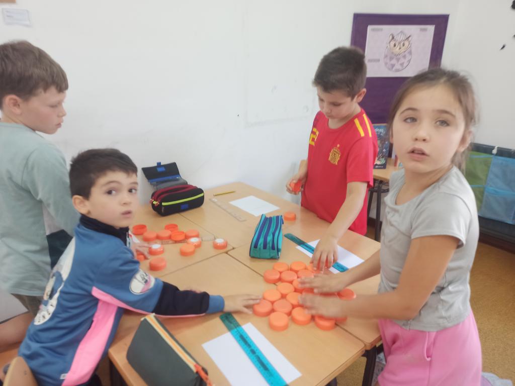 Traballamos a composición e descomposición de números nas súas tres fases, manipulativo, gráfico e simbólico. Noutra proposta traballamos a xeométria co xeoplano, concepto de segmento, tipos de liñas, construimos figuras como cadrado, rectangulo, triángulo e chagamos o exagono. Na outra proposta traballamos a fotografía dende ás matemáticas. A regra dos 3/4:onde debe ir o máis importante da foto? Medimos, repartimos os centimétros en 3 grupos iguais, fixemos rectas e ... Atopamos os 4 puntos nos que debemos colocar o importante da imaxe.