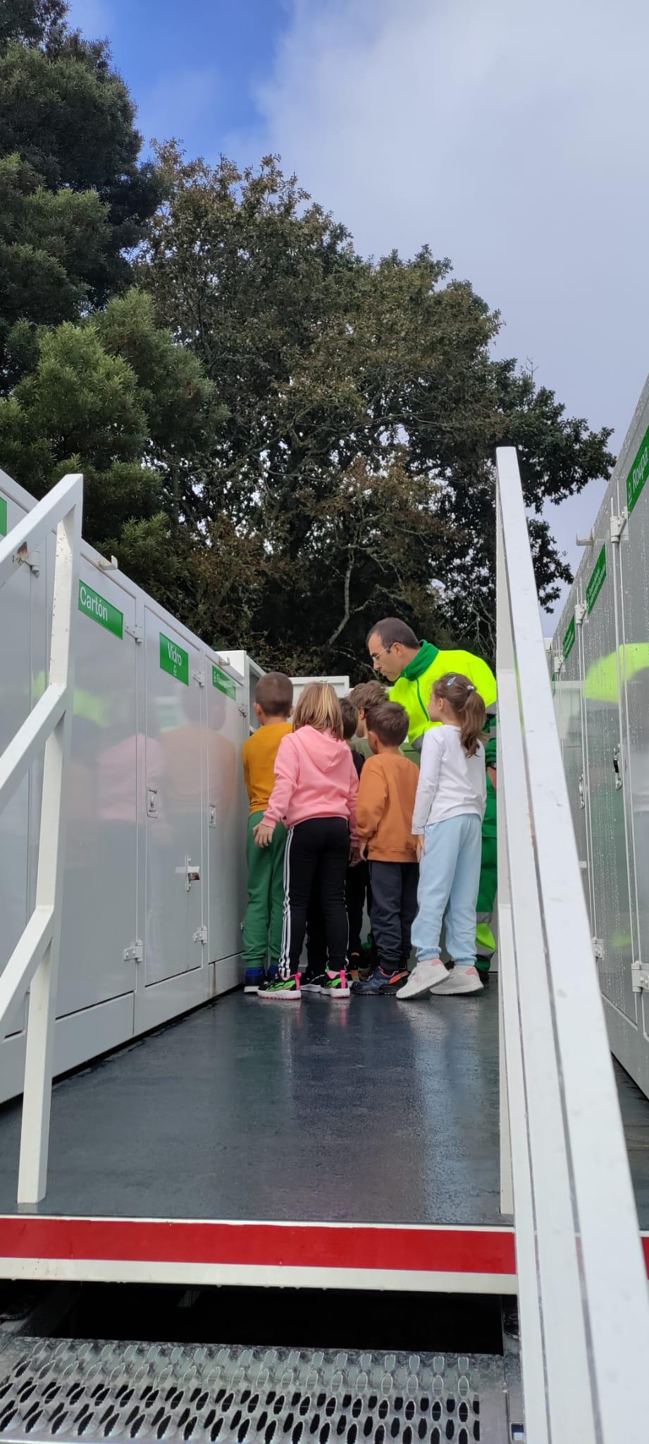 Visita do punto limpo móbil para o alumnado de 1°ciclo, que son a ecopatrulla do cole. Explicoulles como se recicla, a onde van, que fan logo no punto limpo fixo, onde está... (coa colaboración do Concello)